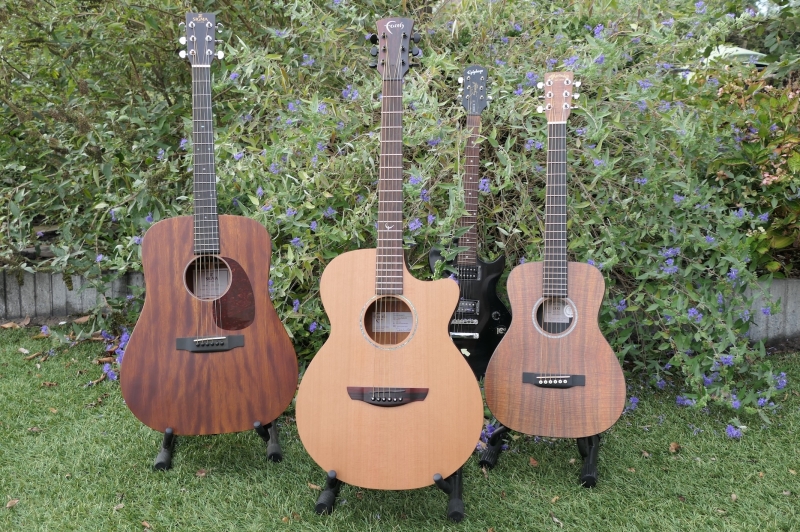 Mijn eerste gitaar was een Fender CD-60S en kort daarna een Fazley W70 zodat ik samen met mijn vriend kon spelen. Een paar jaar later heb ik van mijn verjaardagsgeld een Sigma DM-15 gekocht waar ik 3 jaar op gespeeld heb. Toen vond ik het tijd worden voor een nieuwe. Ik heb de Fender en de Fazley verkocht. En ja, ik weet de regel van Koen: “verkoop nooit je eerste gitaar”, maar ik zag de Fender niet als mijn eerste gitaar, want velen beginnen op deze gitaar. De Sigma heb ik zelf uitgekozen, dus deze gitaar beschouw ik als mijn eerste gitaar en gaat dus niet weg. Met het geld van de verkochte gitaren, verjaardagsgeld en wat extra heb ik nu een semi-akoestische gitaar erbij gekocht. Een Faith Naked Venus. Soms nam ik op vakantie ook mijn gitaar mee, maar dat nam altijd wel veel ruimte in beslag. Tijdens mijn laatste vakantie stond ik op een camping met mijn popuptentje. En ja, geen ruimte voor een grote gitaar natuurlijk. Maar wel tijd voor de webinar. Zat ik daar voor mijn tentje en zonder gitaar de webinar te volgen. Dat kan natuurlijk niet. Vandaar dat ik afgelopen zomer een reisgitaar heb aangeschaft, een Martin LXK2 Little Martin. Deze staat op mijn slaapkamer en pak ik af en toe als ik boven ben en nog zin heb om even te spelen.