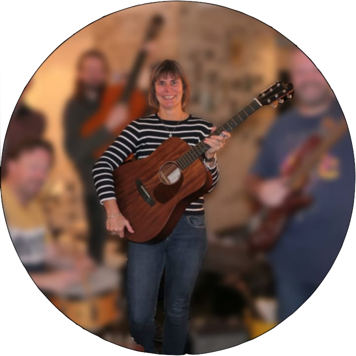 De ene hand op de juiste snaren en met de andere hand tegelijkertijd een slagje maken. En dat ook nog eens zonder te kijken. Niet te doen. Ik durfde dan ook heel lang niet samen met mijn vriend te spelen. Totdat het iets makkelijker ging en ik het wel aandurfde, hetzij heel voorzichtig. Maar het ging steeds een beetje beter en zo werd het ook leuker. In november 2021 ben ik dan ook fysiek gitaarles gaan volgen en zo kwamen er steeds meer liedjes die ik kon spelen. Altijd begon ik met een makkelijk liedje (Last Kiss van Pearl Jam; later werd dit As It Was van Harry Styles) en daarna ging ik het liedje oefenen uit de les. Daarnaast deed ik de slagjes en ritme cursus van Koen. Dit vond ik een erg leuke en leerzame cursus. Door ziekte van mijn gitaarlerares ben ik jammer genoeg in juli 2024 weer gestopt met fysieke gitaarlessen. Maar hierdoor ben ik wel weer meer te vinden in de community. En het werd nog leuker toen Koen besloot Webinars te gaan geven. Nu leer ik weer iedere week een nieuw liedje en wat ook super leuk is, is dat je Koen en de medecursisten op deze manier beter leert kennen.