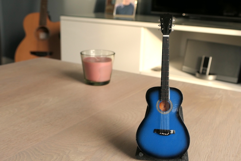 “Mijn nieuwe reisgitaar, staat klaar voor de komende avonturen.”